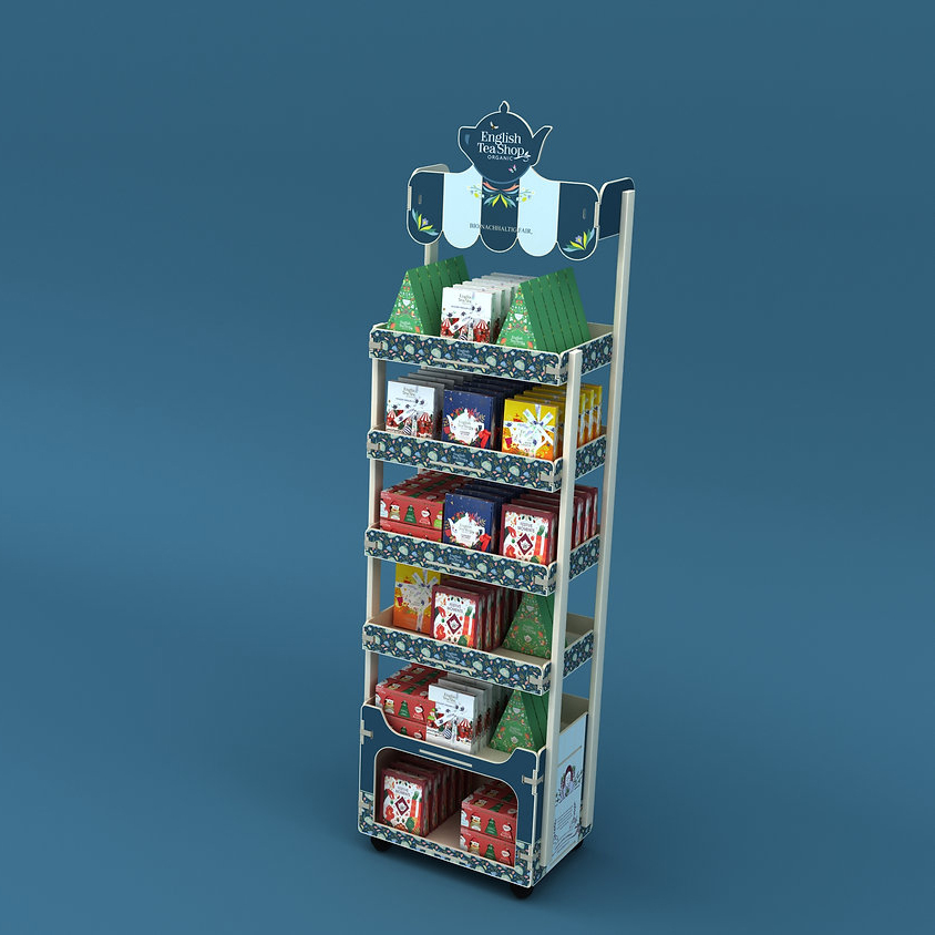 Thematic Design: Featuring a delightful teapot-shaped header and intricate English-inspired patterns, this display creates an immersive and memorable shopping experience.