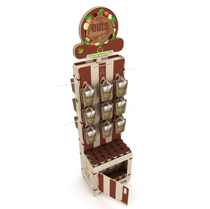 Designed specifically to showcase FreshNuts products, including packaged nuts and hazelnuts.