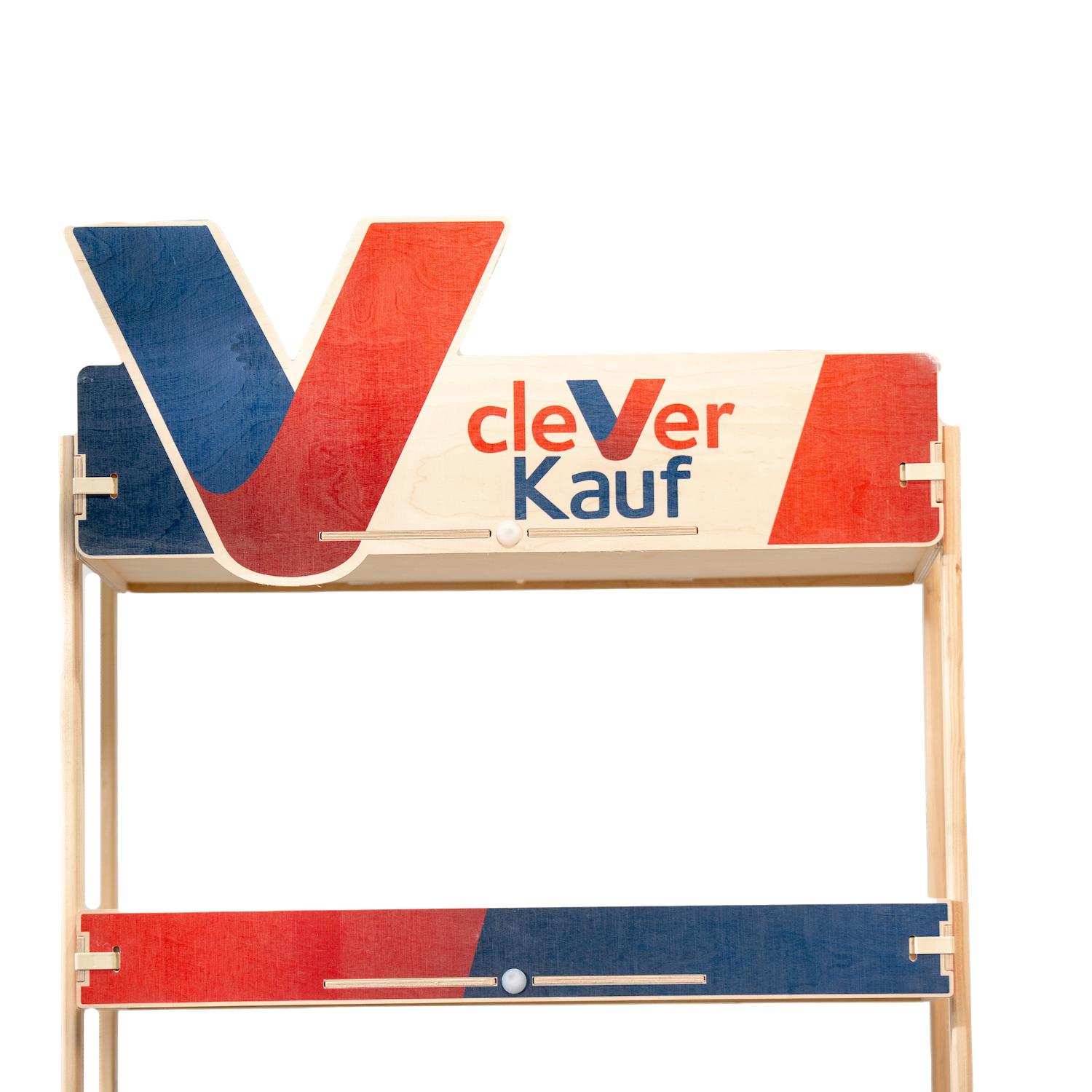 Bold, Modern Design: A clean, geometric design with strong color blocking that stands out in any retail environment.